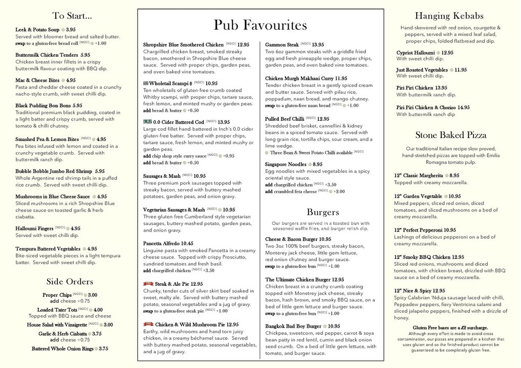 Our new menu is finally here! 7 new starters, 7 new mains, improved burgers, 4 delicious hanging kebabs and 5 hand-topped stone baked pizzas! So many gluten free options: scampi, Inch's cider battered cod, sausages & mash, curry, chilli, we even have gluten-free buns for the burgers. Come down and see what all the fuss is about 😋 Don't forget bingo tonight from 8pm in the bar. and we're showing England v Wales in the pool room.